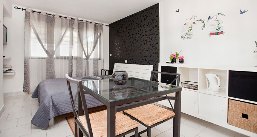 Les appartements sont entièrement équipés. Cela comprend les draps, les serviettes, les ustensiles de cuisine, le réfrigérateur, le poêle avec deux plaques chauffantes, une bouilloire électrique, une cafetière, un grille-pain, une télévision par satellite, une radio.